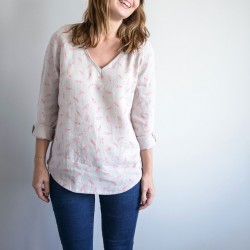 On n’a jamais assez de blouses ! Elles ont toutes quelque chose de particulier qui nous les rendent indispensables. Madone a pour elle sa découpe futuriste et élégante des manches dont le haut constitue aussi l’empiècement dos. Légèrement cintrée, c’est une blouse facile à coudre et à décliner dans de nombreux tissus : tencel, lin, voile de coton, viscose ou modal…entre autres ;)
